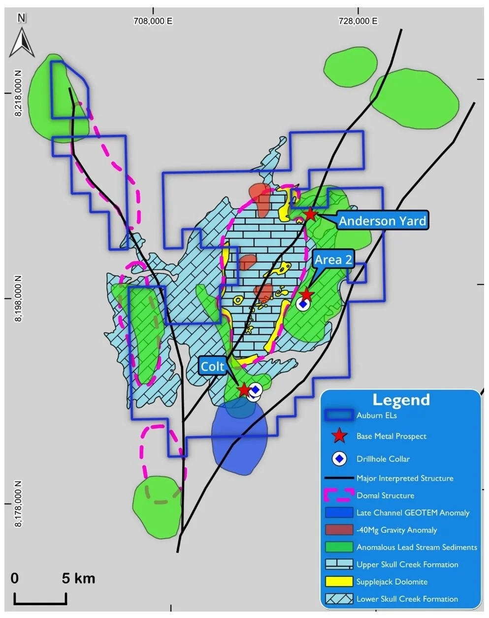 Prospective host sequence is not exposed (~150m deep): untested by drilling